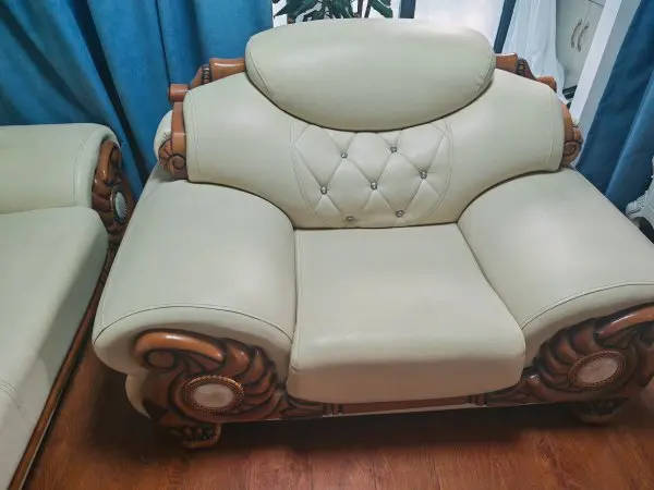 换家具自用皮质沙发转让,小的长约95cm,总宽约150cm,坐垫深55cm,高约40cm,大的总宽约230cm,坐垫深55cm,高度约40cm,1一张100元,2张200元,自己搬走。